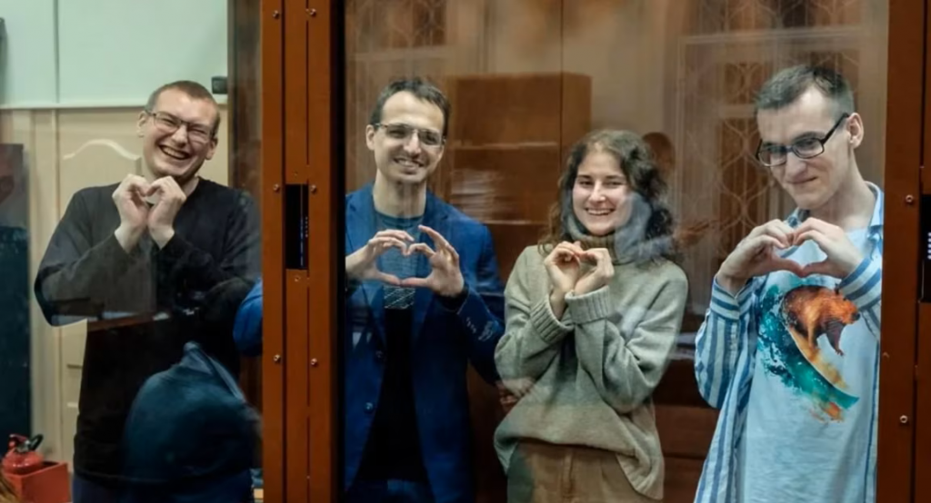 Vasiliy Neustroev, Yan Ksenzhepolsky, Anna Arkhipova, and Pavel Sinelnikov (from left to right) © Public domain (via RFE/RL)