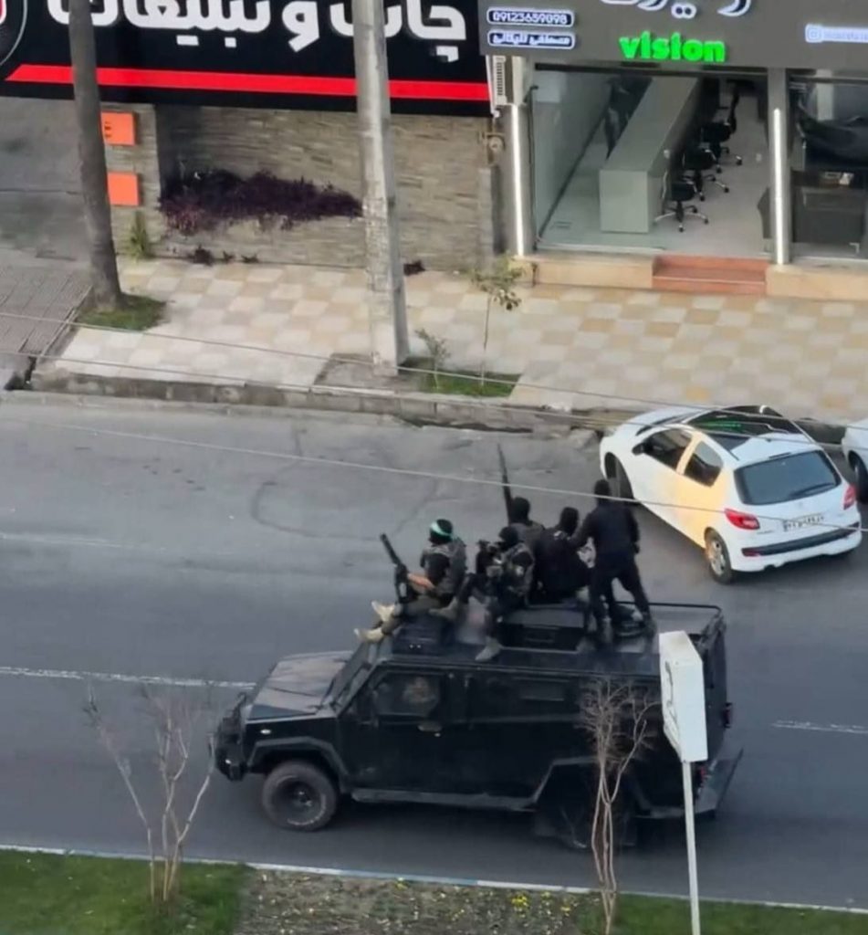 Otro video de Borujerd (provincia de Lorestán), publicado en Internet el 17 de enero de 2026, muestra a miembros de las fuerzas de seguridad armados en uniformes de camuflaje beige y equipados con armas de fuego letales, y vehículos a lo largo del bulevar Takhti. El vídeo muestra camiones blindados y lo que parecen camiones civiles reconvertidos con grandes boquillas para usarlas probablemente como cañones de agua.